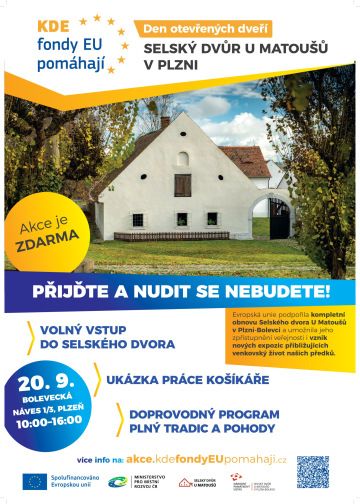 V sobotu 20. září 2025 od 10:00 se na Bolevecké návsi 1/3 v Plzni otevřou brány Selského dvora U Matoušů. Akci pořádá Ministerstvo pro místní rozvoj ČR a představí se zde i ITI Plzeňské aglomerace.
